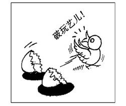 【文题解析】:漫画的内容是:画面左下方,有一个裂为两半的边缘不齐的蛋壳;右边是一只刚出壳的小鸡(小鸭、小鸟),小鸡嘴巴的斜上方写着“破玩艺儿!”。